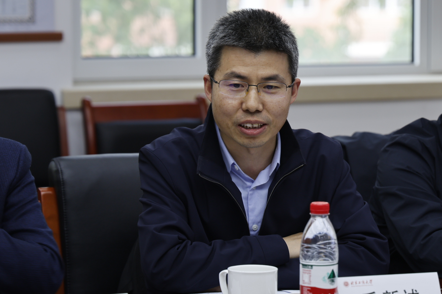 曹显兵以《清底数 聚共识 谋发展》为题,紧扣学校“双一流”和高水平研究型大学的建设目标,聚焦学校发展重点任务,汇报了数学与统计学院的基本情况、未来规划与思路举措。他用数据说话,从教师结构、学科门类、人才队伍、教育教学、科研成果等方面介绍了学院的基本情况。描绘了未来规划,加强有组织的科研团队建设、强化学科建设的龙头作用,全面提升教学水平和人才培养质量。介绍了学院下一步发展思路,以强化政治统领,强化顶层设计,强化主体意识“三个强化”全面加强党的建设,以高层次人才引进和青年教师骨干培育“两个抓手”推进高水平人才引育,以开放格局持续深化中外合作办学特色,完善学院奖惩机制激发教师干事创业积极性。数据科学系主任岳美玲、应用数学系主任王丽娜、应用统计系主任谢峰、经济统计系主任赵江、教授代表耿直、陈星玎、涂建华、王学丽从科研团队建设、青年教师培养、人才培养、国际交流、学科交叉融合等方面进行了交流探讨。
