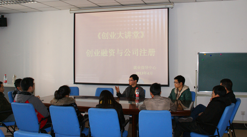 深入开展有针对性的校内创业指导活动,针对大四学生即将进行公司成立及注册的情况,就业指导中心开展了《创业大讲堂》活动,邀请青年创业家为创业学生讲授公司注册及创业融资相关知识,并对创业项目提供具体指导。