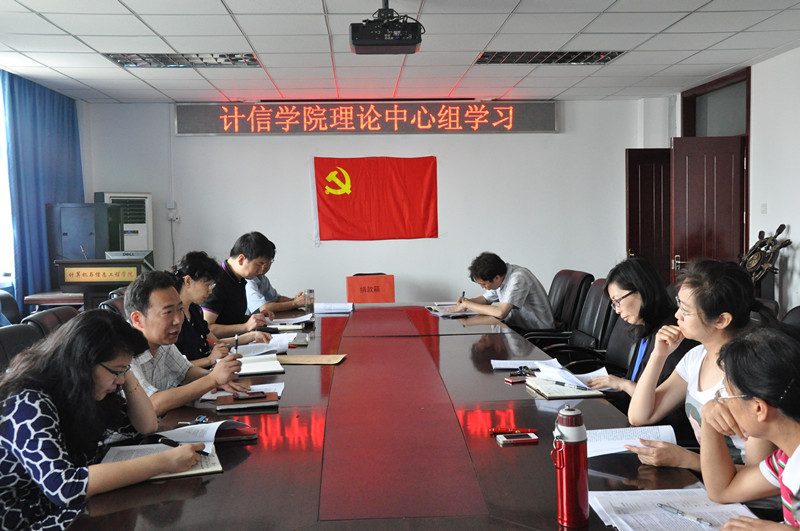 6月26日下午,计信学院党总支理论学习中心组成员齐聚阜成路校区共同学习刘淇同志在北京市第十一次党代会上的报告——《全力推动首都科学发展,为建设中国特色世界城市而努力奋斗》,开展喜迎七一活动。大家重点研读了报告中今后五年工作的基本要求、指导思想、奋斗目标、主要任务,并结合我校向教学研究型大学转变、本科教学综合改革等重点工作,认真思考探讨了学院的发展规划、学科特色和科研方向。如何建立政产学研用一体化机制,加强高等教育资源整合,提升协同创新能力,建立学院特色是讨论的重点和共识。
