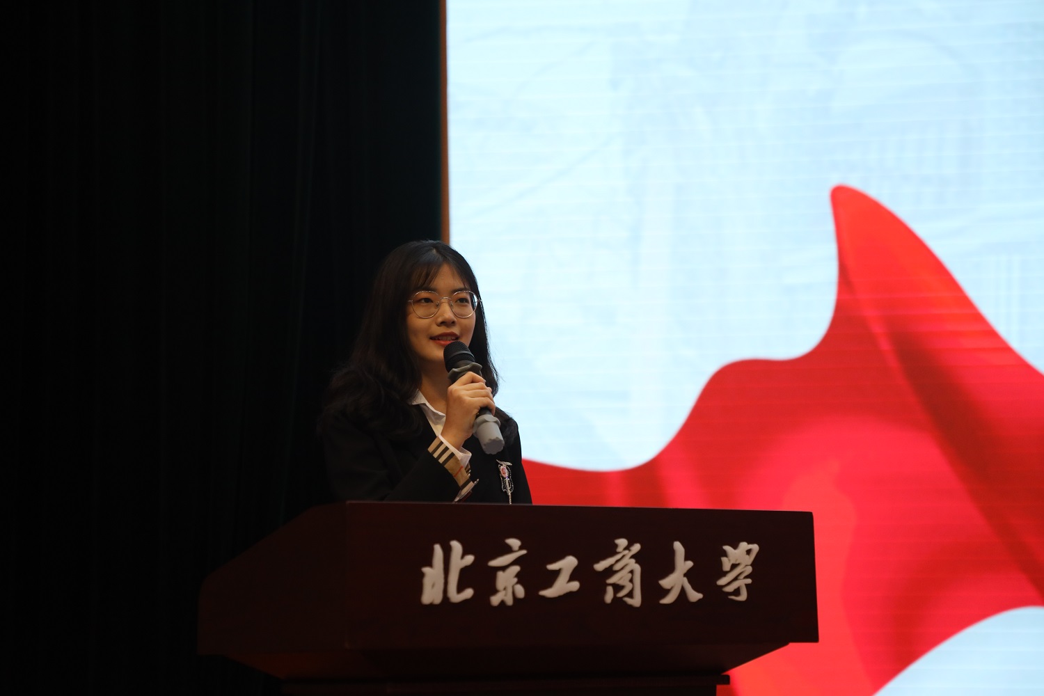 “北工商是与共和国一起成长起来的”。在校史宣讲中,宣讲团成员从北工商的历史沿革图切入,将学校建校71年以来“立学为民”、“学而为国”的发展历程完整呈现,生动展示了北工商红色基因的一脉传承。又通过对校徽、校训、校歌的解读,以及对学校环境设施的介绍,让2021级新生对母校有了更为直观而系统的了解。