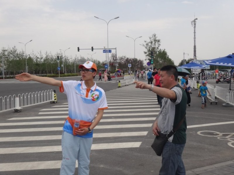 志愿者为游客指引路线 志愿者为游客介绍景点