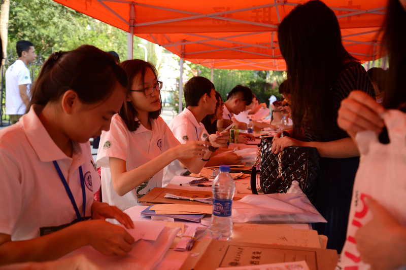 各学院报到处将“新”与“心”这两个字彰显得淋漓尽致。食品学院在新生接待处设立了学生党员迎新接待处,方便家长休息。经济学院在家长休息区特意摆放了一面“感恩墙”。一位在感恩墙前驻足观看的家长说道:“我觉得这个创意非常好,因为咱们大学现在很重视人才培养,现在的孩子不仅要欣然接受别人的爱,还要学会感恩。”艺术与传媒学院、法学院还为新生精心设计制作了一本“新生入学指南”,其中包括学习、吃住、交通、校医院等多方面内容。下午,学校召开新生家长会,学校教务处处长魏中龙向各位新生及家长详尽介绍了学校正在全面实施的本科教学综合改革。
