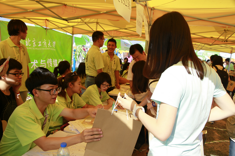 今天,北工商张开双臂,与来自五湖四海的学子热情相拥。在地铁良乡大学城站,志愿者们热情细心地服务,一辆辆“迎新专车”成了新生对北工商的第一印象。天桥上、道路两旁所精心布置的条幅、展板、导航图等让新生及家长进一步认识学校。“最美中国,美丽校园”优秀摄影展等展览前也吸引了不少新生及家长前来观看。校园广播中播放着学校介绍,帮助新生尽快熟悉学校情况,融入校园生活。志愿者服务站还为新生及家长准备了充足的饮用水和座椅,满头大汗的学生志愿者们耐心解答、服务。