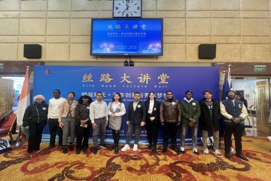 11月11日,应丝路国际智库交流中心的邀请,我校商学院国际工商管理硕士全英文项目班12名学生参加了“赋能明天·青年创新与青年梦想”主题丝路大讲堂。来自对外经济贸易大学、北京外国语大学、中国石油大学(北京)、北京工业大学等70多个国家的近300名国际学生参加了此次活动。