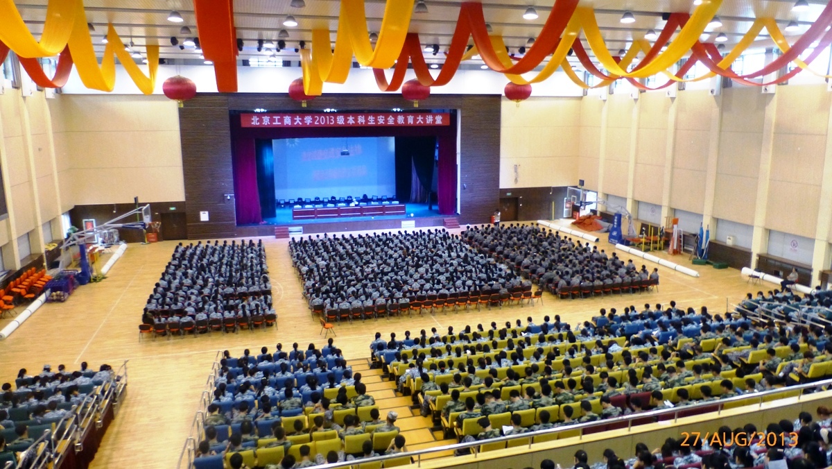 8月27日,良乡派出所管片民警王高虎在保卫处副处长杨东杰的陪同下,在良乡校区文体馆对全体参训新生3000人进行了一次治安安全的讲座。王警官分析了良乡大学城周边的治安环境,分析了近几年大学城学生的违法犯罪特点及原因,警示新生要珍惜生命,提高警惕,自觉做好治安防范工作,做遵纪守法的模范。杨东杰从防盗、防诈骗、防治安事故的角度分析了近两年学校典型的治安案件,并警告大家要自觉提高治安防范意识,群防群治,防止盗窃、打架、诈骗等治安事件的发生。