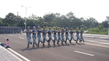 虽然目前是在训练阶段,但是学生们仍然精神抖擞,士气高昂。从排列成队到变换队形,再到喊出响亮的口号,在营长的指挥下,方阵队伍有条不紊地练习着。由于刚开始训练,同学们的动作还不是十分协调。教官们耐心地纠正训练中所出现的错误,经过几次反复指令的训练,能够很明显看到同学们的进步。当然,整齐统一的步伐离不开每位同学的认真与努力。他们在训练中相互纠正、相互配合,使方阵训练的统一性与整齐性得到很大程度的提高!