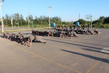几天以来,学员们皮肤渐渐黝黑,部分有脱皮现象。虽然身体已经有些吃不消了,但是他们的步伐依旧坚定,口号仍旧响亮。