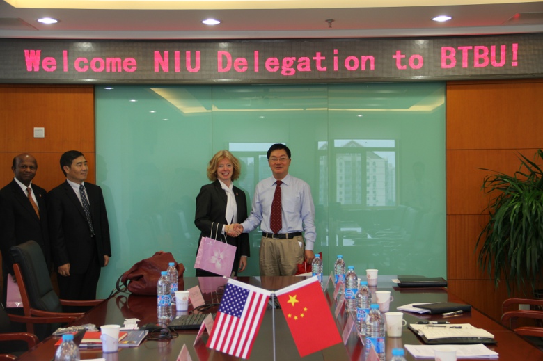 德博拉主任对谭校长的盛情邀请和李副校长的热情接待表示感谢,并详细介绍了北伊利诺大学的历史发展、院系构成和学科设置等基本情况。她说北伊利诺大学高度重视国际化发展,两校的商学院和计算机与信息工程学院在此前就合作项目进行了深入的交流和沟通,希望此次来访能对北京工商大学有更深入的了解,共同推进两校的合作项目。