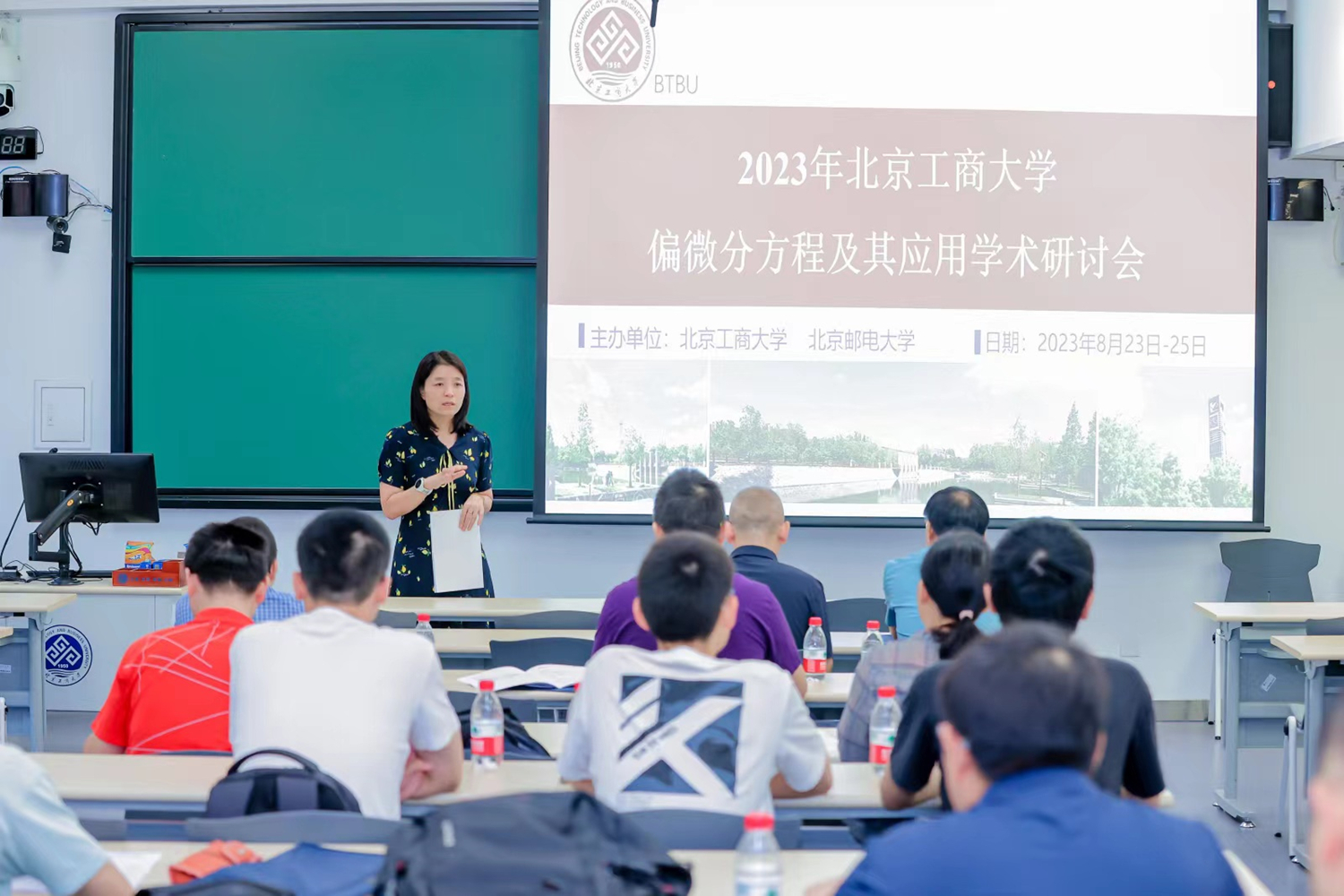 8月24日、25日,2023年北京工商大学偏微分方程及其应用学术研讨会在我校召开。来自清华大学、北京邮电大学、中国矿业大学、中山大学、天津大学、天津师范大学、中国科技大学和香港科技大学等十余所高校的偏微分方程领域的专家和学者齐聚一堂,数学与统计学院部分教师和研究生参加此次会议。