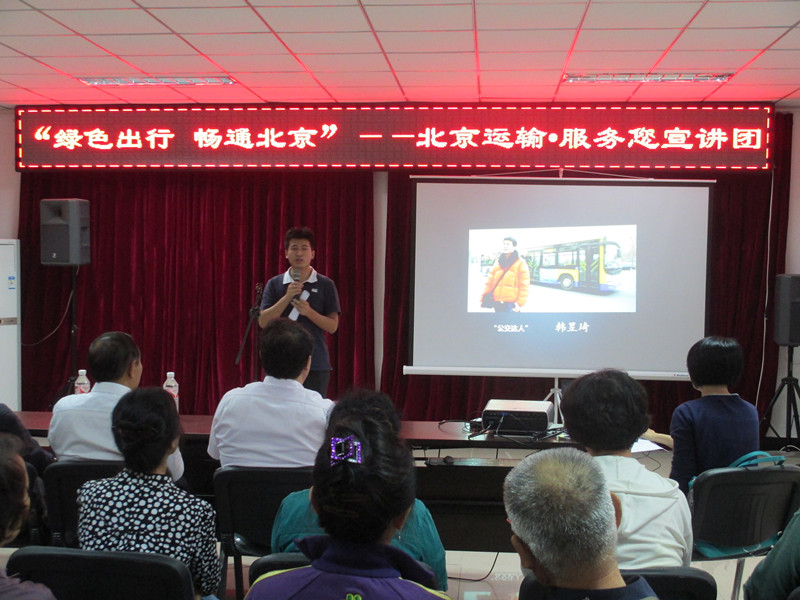 此外,应北京市交通委员会邀请,韩昱琦及小组成员于9月17日参加了由市交通委在石景山区玉泉西路社区、翠谷玉景苑社区等社区开展的“绿色出行,畅通北京——北京运输服务您”专题宣讲会。作为宣讲团4名宣讲员之一,韩昱琦为社区居民们讲述了自己的公交故事,分享了自己乘坐公交的乐趣以及实现“公交梦”的历程,真实的体会、生动的讲解、简单但不平凡的“中国梦”赢得了社区居民阵阵掌声,展示了工商学子的良好风貌。