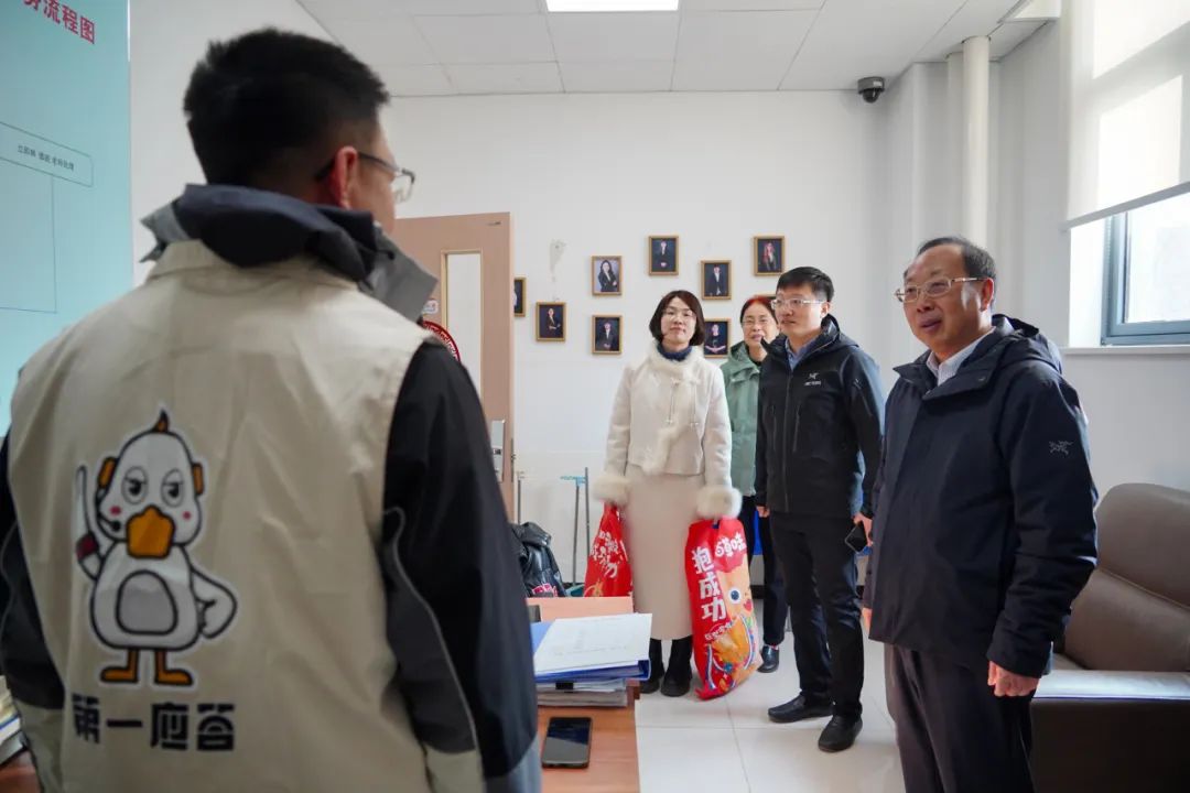 在西区综合楼中控室、西区大门值班室,左敏看望慰问了正在值守的保安人员,为他们送上学校精心准备的慰问品,向他们表示衷心感谢,并祝愿大家新的一年万事如意、阖家幸福,嘱咐大家履职尽责做好寒假期间各项服务保障工作,确保校园安全稳定。