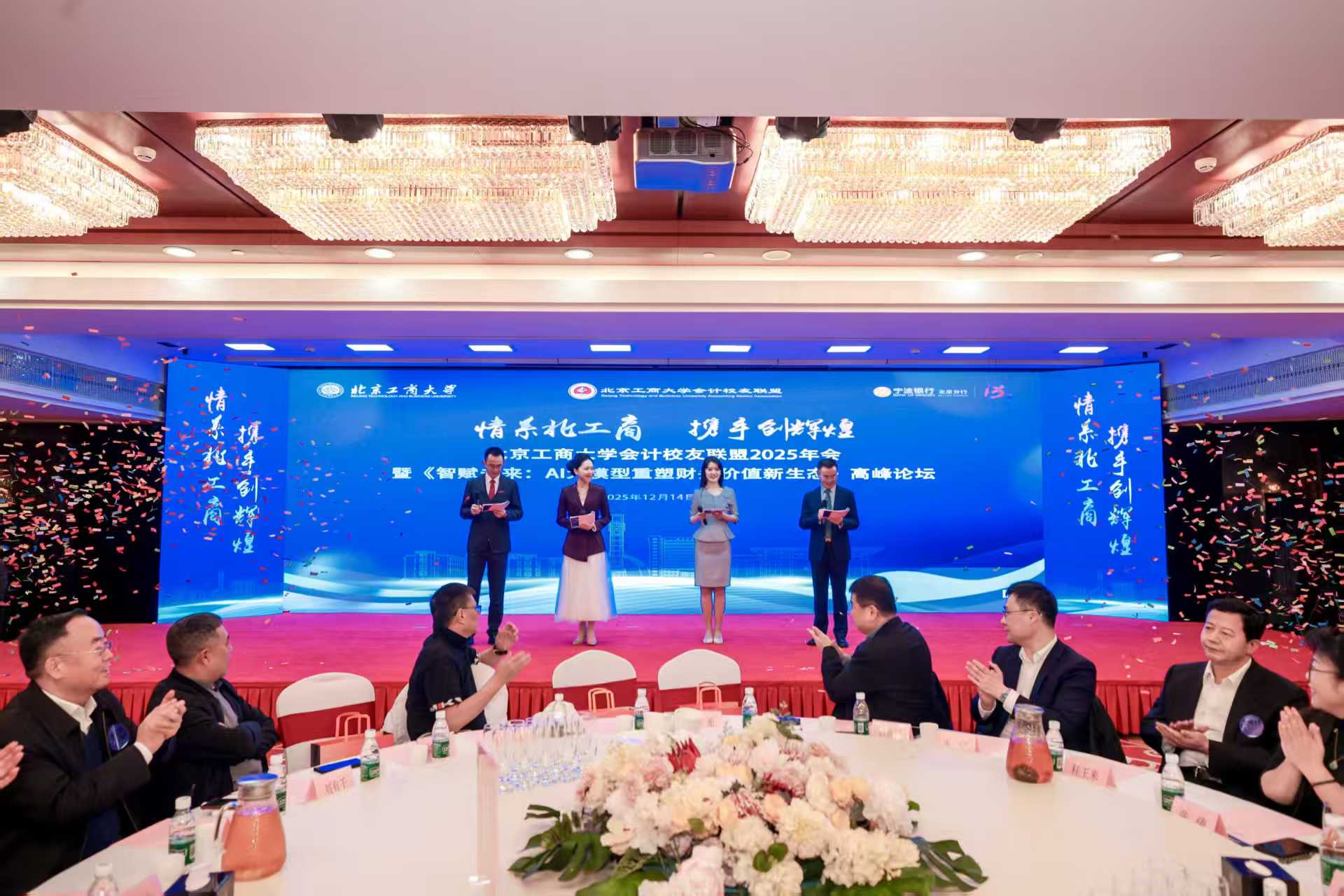 12月14日,北京工商大学会计校友联盟2025年会暨《智赋未来:AI大模型重塑财务价值新生态》高峰论坛隆重举行,来自全国各地及海外的200余位杰出校友、企业代表、行业专家齐聚一堂,以“AI赋能财务”为核心,共话会计行业转型方向,共探财务价值重塑路径。