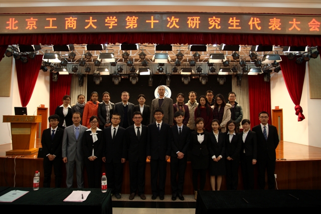 会议听取、审议并通过了《北京工商大学第十次研究生代表大会代表资格审查报告》、《北京工商大学第九届研究生会第二任委员会工作报告》、《北京工商大学第九届研究生会第二任委员会经费使用报告》。大会经由第十届研究生会主席团候选人竞选展示,通过代表无记名投票的方式,差额选举产生了北京工商大学第十届研究生会第一任主席团成员。
