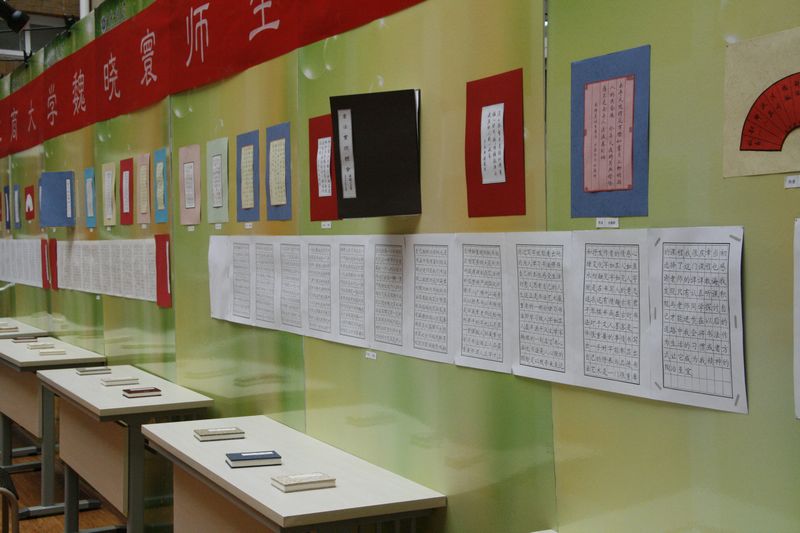 魏晓寰表示,将点滴所学回报母校是作为一个校友的责任和义务所在,他希望同学们能通过2个月的书法学习,略知书法艺术之一二,并产生进一步学习钻研的兴趣和愿望。