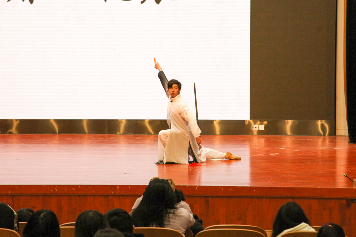 饶莉娜提到,剑舞在秦汉时代十分普及。剑是古代文人墨客、君子武士的随身佩带之物,既可以防身御敌,又能透射出风韵的气度,而执剑而舞则是人们寄情抒怀的一种手段。楚汉相争时的鸿门宴“项庄舞剑,意在沛公”正是古代剑舞的典故。剑舞相较于柔美的袖舞而言,更加气势磅礴。与剑舞相伴介绍的扇舞也是中国民间的传统舞蹈形式之一,汉族、哈尼族、朝鲜族等民族在长期的历史过程中,都形成了各自风格不同的扇舞。饶莉娜表示,民族舞曲的符点节奏是与其他舞曲不同的,它反映了一个民族独特的文化。中国古代流传下来的舞蹈是中华文明的文化财产,更是中华历史的印证,要传承下去。