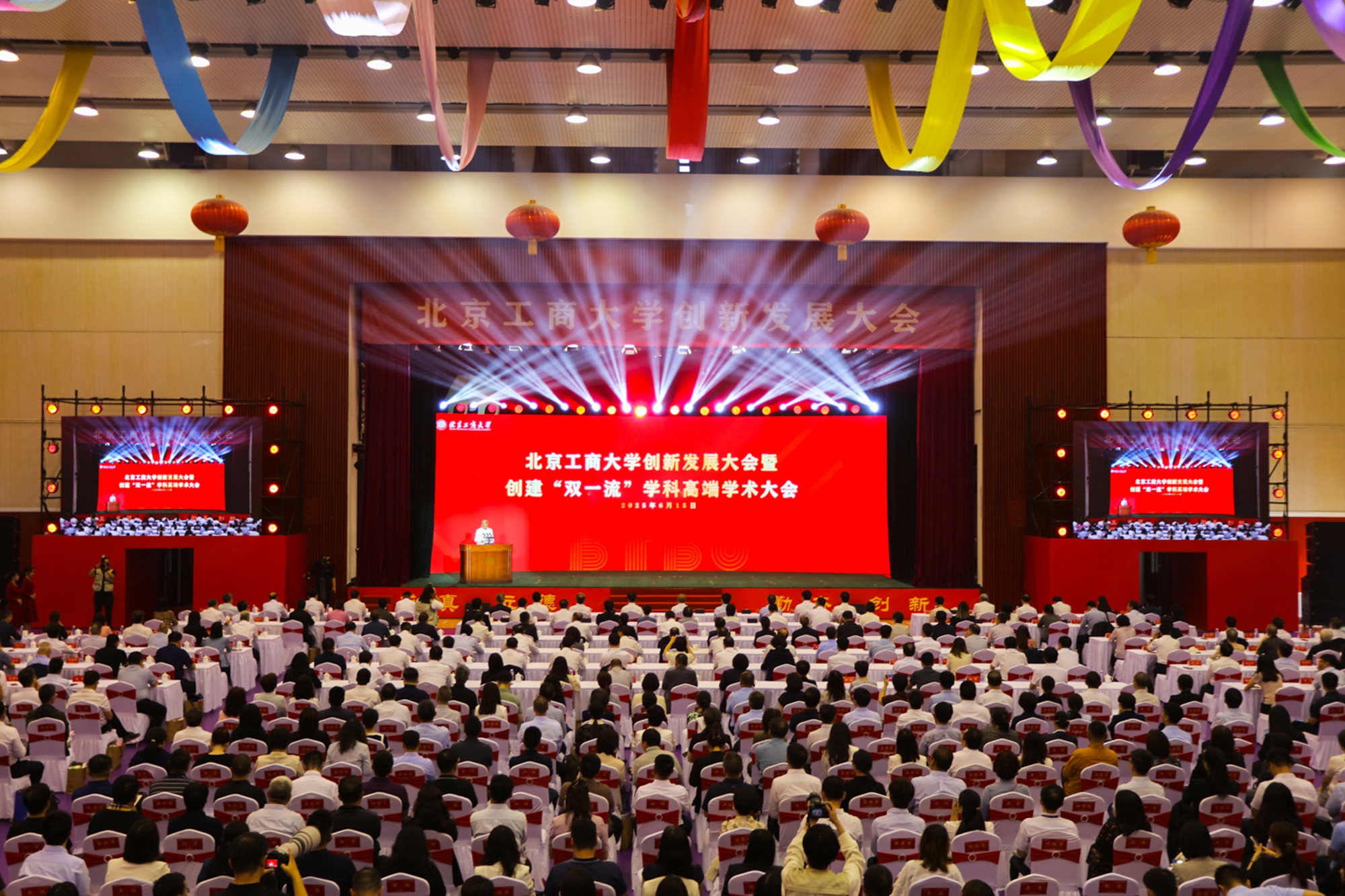 6月15日,北京工商大学创新发展大会暨创建“双一流”学科高端学术大会在良乡主校区文体馆举行。大会以 “工商一体化,奋进‘双一流’”为主题,回顾学校发展历程,展示科技创新成果,谋划“双一流”学科蓝图。