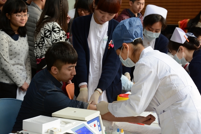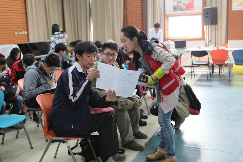 此次无偿献血活动继续得到了全校学生的积极响应,据统计,短短一上午,共有254位同学参加了献血。艺术与传媒学院作为承办单位,提前一周就开始做各项筹备和宣传工作。学校红十字会的同学们总结以往经验,组织献血同学发号排队,每20人一组有序进入献血大厅,保持采血现场空气流通。学生处石淑艳老师、校医院刘大夫等是献血现场的“老人”,盯在现场,随时解决学生遇到的各种问题。学生志愿者们则为献血活动提供了全程服务,早早赶到采血现场,为同学们咨询献血知识、献血流程,告诉同学们填表要求等,用微笑温暖着献血的同学。献血期间,学生处处长吕素香来到现场看望献血同学及在场的工作人员。