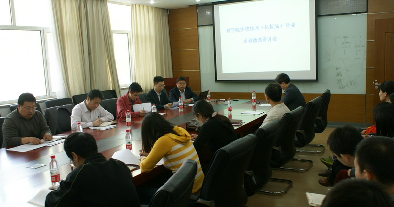 赵华介绍了生物技术专业此次本科教学改革的背景和目的。王昌涛副教授以“研究型实践教学改革”为题对生物技术专业本科教学改革的总体规划和内容做了精彩的展示。他谈到该专业旨在培养全面发展的复合型、应用型理工类高级人才,在教改中应将课堂教学环节与研究型实践深度融合,结合教师科研课题及本科生创业实践,逐步建成开放式的本科研究型实践平台。同时,要整合行业相关资源,丰富研究型实践改革环节,将专业延续性教学引入整个实践教学部分,真正实现本科教学改革的目的。王敏向大家介绍了“三统一”及“四步走”的本科课堂教学部分改革方案和措施,她提到要实现“科研成果进课堂”和“行业专家进课堂”,使教学内容实用且紧跟学科前沿,应理论和实践相结合,教学与科研导师制相结合。董银卯教授表示,生物技术专业化妆品方向的本科教学不仅是请进来,走出去,更要面向社会;要充分利用优势资源,带领学生和教师走出课堂,走近实验室,走进化妆品生产研发企业。