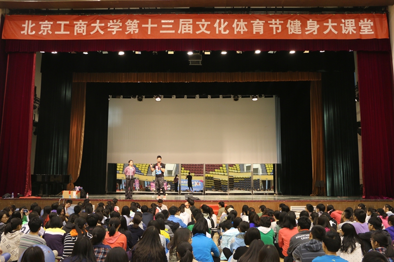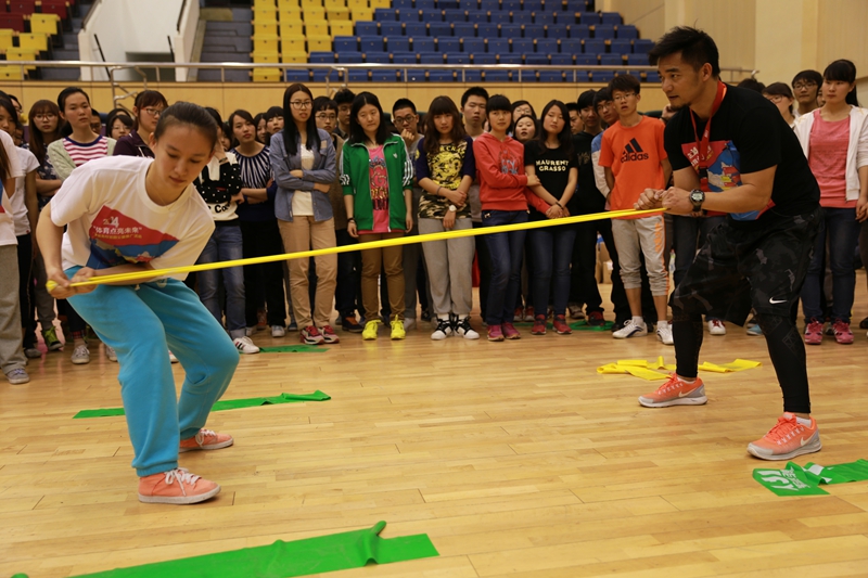 4月16日晚,学校第十三届文化体育节健身大课堂在文体馆开讲。此次活动是“2014体育点亮未来”全国高校巡回公益推广活动,与以往不同,本次健身大课堂打破了枯燥的授课模式,而是以全民健身的方式,让同学们领悟健身的乐趣。大学生体育协会公益健康委员会成员刘悦莅临指导,300余名学生参与。