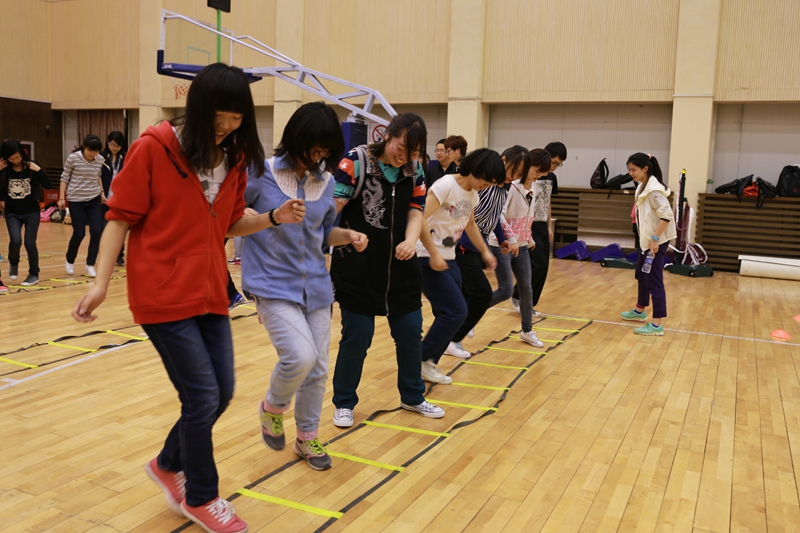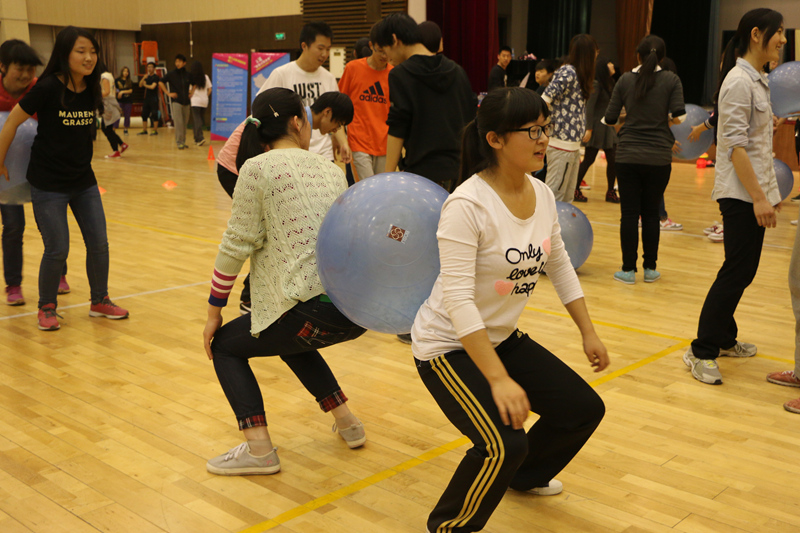 活动分为两个部分,第一部分是“节奏体语”,由刘悦与乐团鼓手亲自创作,带领同学们用身体打出了不同的节奏,合成了一场震撼的节奏盛宴。第二部分是“趣味全功能素质训练”, 6种不同的运动器械让同学们兴趣倍增,并且运用身边的弹力带、健身球等器械,锻炼身体的不同部位,感受到了运动的真谛与快乐。