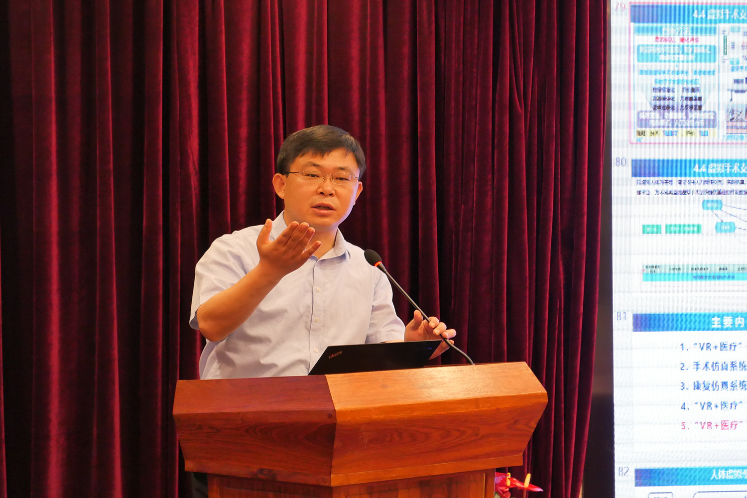 李帅教授作题为《“VR+医疗”仿真系统及其关键技术》的主旨演讲。李帅从“VR+医疗”的研究背景与现状、手术仿真系统和VR康复训练系统典型案例、“VR+医疗”关键技术、“VR+医疗”未来工作等方面介绍了最新的研究进展。并介绍了多模态医学影像分析处理、个性化人体器官几何物理建模、视力觉一致的复杂交互仿真等关键技术,并讲述了手术仿真系统和VR康复训练系统典型案例。