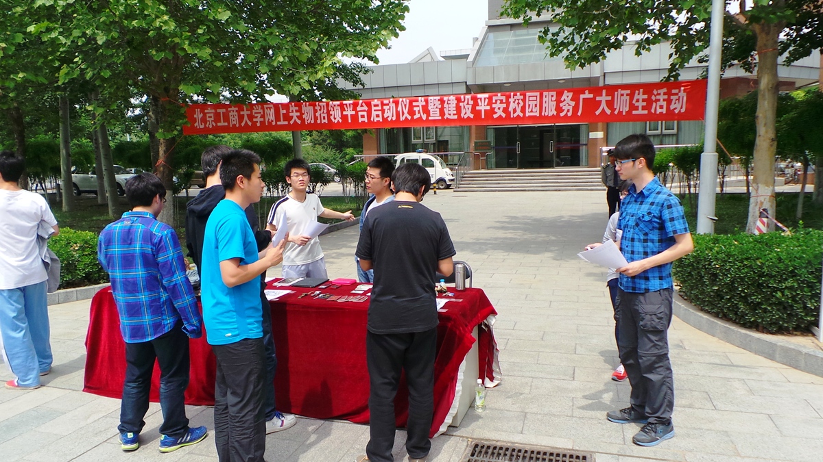 为进一步落实群众路线教育实践活动,更好地服务广大师生,推进平安校园建设,5月13日,保卫处组织学生治安队在良乡校区举行了网上失物招领平台启动仪式。今后,同学们可以通过微信(btbulost)、QQ群(347263053)和人人网的人人小站等网上平台,寻找不慎丢失的物品。