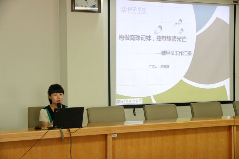 计信学院资深辅导员郭建荣以“加强学风建设,共筑优良院风”为题,从学生基本情况统计、学业分析、英语四、六级通过情况、学业困难学生深度辅导、耕耘工程帮扶结对、学生就业情况、宿舍氛围营造等基础工作出发,阐述他在学生日常管理工作中的一些体会与感悟。在北京高校辅导员职业技能大赛中获得二等奖的艺传学院辅导员纪彬彬,提倡辅导员工作应该树立学生主体意识,把握全局、制定计划、全面细致地开展具体工作。材机学院辅导员郑光以“用‘新’、‘心’、‘德’、‘行’做辅导员工作”为题,围绕《高等学校辅导员职业能力标准(暂行)》,讲述辅导员工作是一个立标准、建机制、有实效的工作,每一名辅导员应找准定位,并借鉴在南开大学参加全国高校辅导员骨干培训班的收获和体验,提倡充分利用微博、微信等新媒体资源开展工作。从复旦大学全国高校骨干辅导员培训班学习归来的经济学院辅导员单紫薇,以“愿做育珠河蚌,捧献耀眼光芒”为题,认为做好学生工作应具有“热爱之心、服务之心、务实之心、奉献之心、学习之心、感恩之心”。
