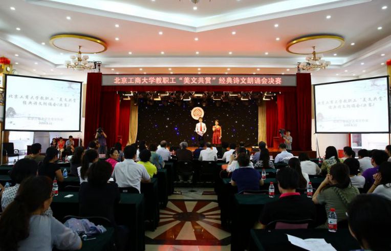 经过两周的准备,12支参赛队伍的35名选手在决赛中更加彰显了我校教职工的素养与魅力,朗诵声情并茂、表演更具感染力。一篇篇朗诵:《祖国啊,我亲爱的祖国》《我的祖国》《我骄傲,我是中国人》《祖国母语》《再别康桥》《香山红叶》《读书人是幸福人》等,使观众深深沉浸在经典诗文的意境中。表演中既有近20名教师带来的气势蓬勃的配乐诵读,也有伴有优美舞蹈的个人朗诵,还有配合话剧表演的双人诵读。朗诵展示了选手们对经典文化的热爱、对经典诗文的深刻理解以及出色的表演才能。配乐、视频、参赛选手们体现时代感的服装等完美烘托了文学经典的内涵。选手们真挚的感情、深情的朗诵、独具匠心的设计和表演感染了在场的每一个人,博得评委和观众的由衷赞赏和热烈掌声。