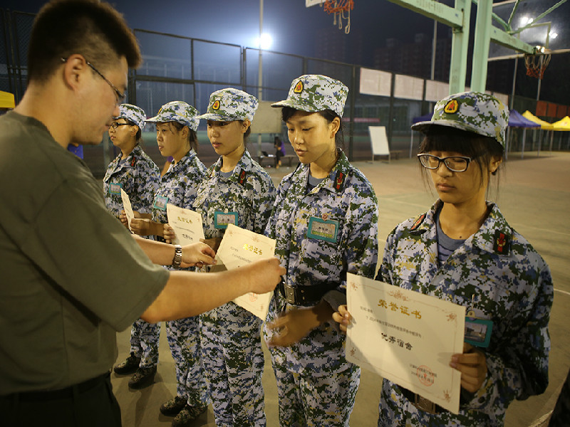 田径场上的男生队列身着迷彩服、皮肤逐渐黝黑,在经过几日的军姿、齐步走、正步走训练后,之前身上的懒散习气全然不见,铿锵的步伐,挺直的腰板,愈发充满阳刚之气。在训练匍匐前进时,尽管衣服被磨烂,但他们专注的神情,迅速的动作让人为之动容。他们朝气蓬勃,立正稍息间彰显干练与果断;他们热情洋溢,嘹亮的军歌响彻校园;他们器宇轩昂,齐步行进中尽显军人风采。