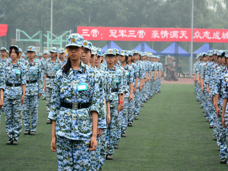 呼吸着经过昨日细雨滋润而变得格外清新的空气,军训学员们怀着愉快的心情,整齐划一地走向了军训训练场。军训已经过了一大半,饱受军训洗礼的同学们,早已习惯了站就笔挺如松,走就步履矫健,唱就高亢音宏,也许是教官们以身作则的感染,也许是教官们谆谆善诱的教导,也许是指导员们东奔西跑的忙碌,也许是这群要渐渐走向成熟的孩子们共同的默契,他们很坚强,队列行进走到脚底疼痛,腰板挺得麻木酸楚,但是所有人都为了方阵的整齐划一而努力着、坚持着。