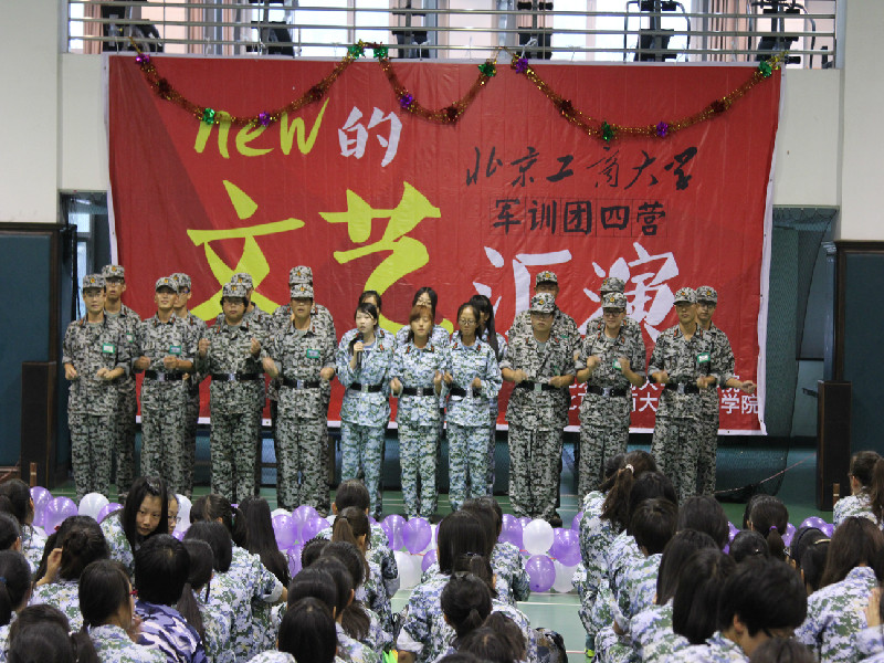 汇演在四营女生带来的舞蹈串烧中拉开帷幕。接档的是歌曲联唱《平凡之路》、《听你说》、《我的未来不是梦》。熟悉的旋律与励志的歌词将同学们的热情点燃,全场迎来了一个小高潮。随后,诗朗诵《你是人间的四月天》采用叙述的形式,再现了教官的良苦用心与同学们在军训过程中思想上的改变、成长,表达了同学们对北工商的热爱。法/马学院13级学姐与新生长笛对吹“梁祝”,悠扬的笛声令众人陶醉。在之后的拉歌环节中,同学们以饱满的热情参与其中,体现了同学们强烈的团体精神和集体荣誉感。
