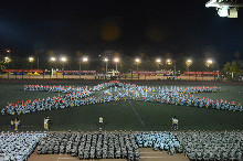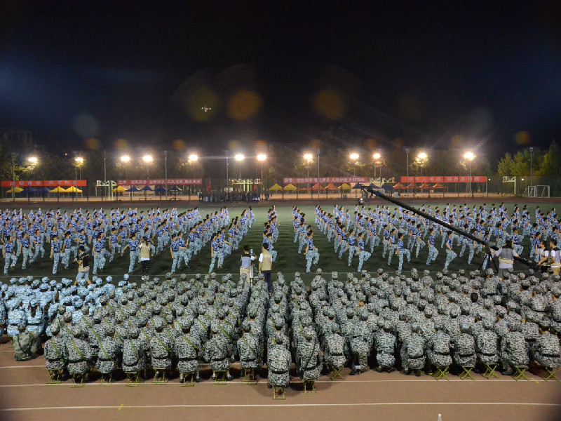 晴空万里,阳光直射地面,气温最高已经达到32摄氏度,这在渐凉的秋季着实是一种煎熬。熬过白天的炎热,晚上相比要凉快许多。各营连齐聚操场,开始一天的合练任务。7:30左右,参谋长正式宣布合练开始。各营方阵迈着整齐的步伐走上跑道,声声口号响彻操场。当每个方阵走过主席台接受检阅的时候,老师和教官频频点头表示赞许。