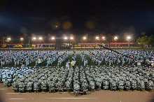 党委副书记卢思锋对今晚的合练做了总结讲话,向新生告知了几点军训结束后正式开学的安排,并向同学们介绍了北工商的放假安排,充分体现了学校的人性化管理,赢得了新生阵阵掌声。