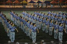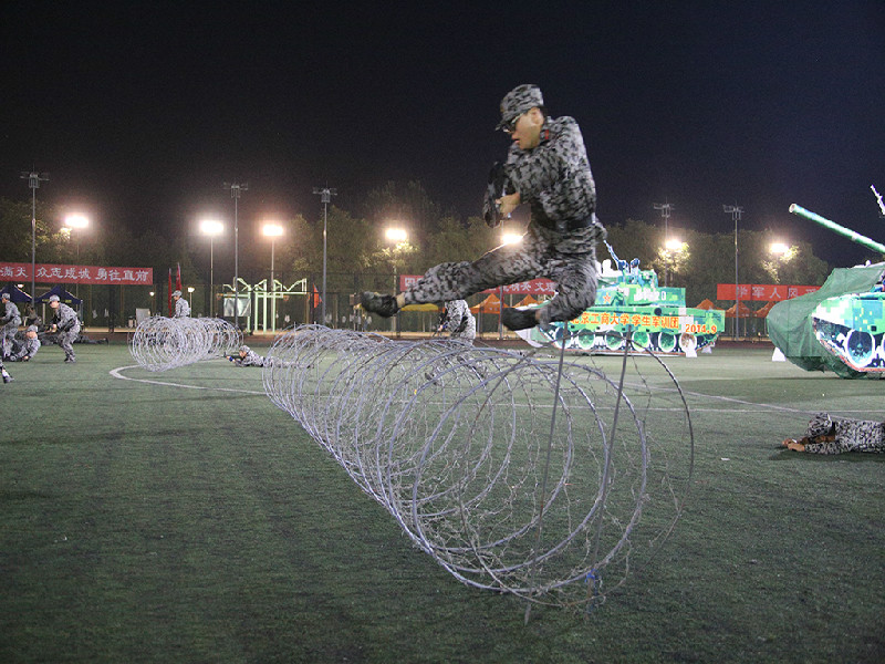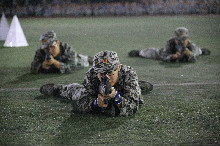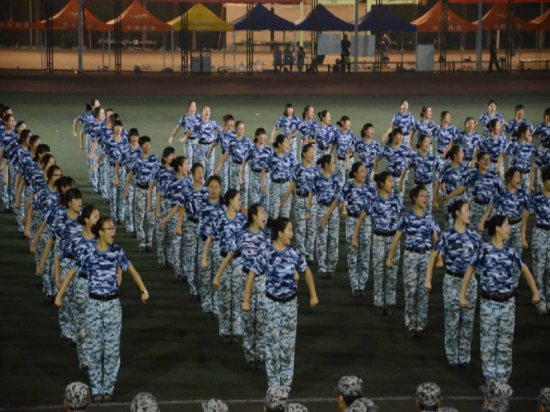 晚上阅兵式的演练仍在继续着,同学们已从最初对流程的陌生变为将每个动作熟记于心。迎着习习秋风,他们踏着坚定的步伐前行着,一次次地与音乐进行协调,希望在每个环节上都做到尽善尽美。紧接着便是各项军事训练科目彩排,我们为计信三营队列的整齐划一鼓掌呐喊,为匍匐前进的勇往直前热血沸腾,为每一次行动的威武雄壮感到无比震撼。兴奋之余,大家也深刻地领会到了军训的意义与魅力:团结一致,奋发向上,热情如火,士气雄壮。每一位新生的青春,早与那绿色的迷彩融为一体。响亮的口号,展示了同学们对未来的信心;整齐矫健的步伐,编织出精彩绚烂的今天;艰苦劳累的军训,铸成了军人的体魄。