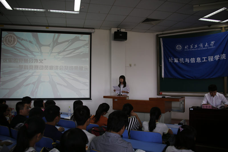 为服务教学改革和人才培养,从新生源头培养学习兴趣、抓好学风建设,计信学院于9月9日在良乡校区举办了“这里的竞赛分外火——学科竞赛动员宣讲会暨学生科技作品展”。学院领导陈谊、张凯伟、姜同强,全体系主任、学科竞赛带队老师及全体14级新生参加会议并参观作品展。