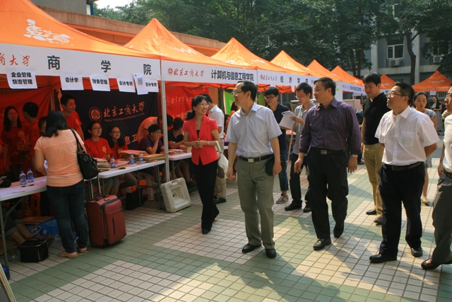 校党委书记谭向勇、副校长谢志华、李朝鲜、方德英等先后来到迎新现场,与负责接待工作的学院领导、研究生辅导员、学生干部、迎新志愿者,以及新生和家长们进行了亲切交流。校领导对各学院招生情况及后勤保障工作尤为关心,详细询问了迎新工作的落实情况,并对聚集到北工商的优秀学子们表达了诚挚的祝福和期盼,希望他们以工商为家,努力钻研,好好把握三年的研究生生涯,做好人生规划。
