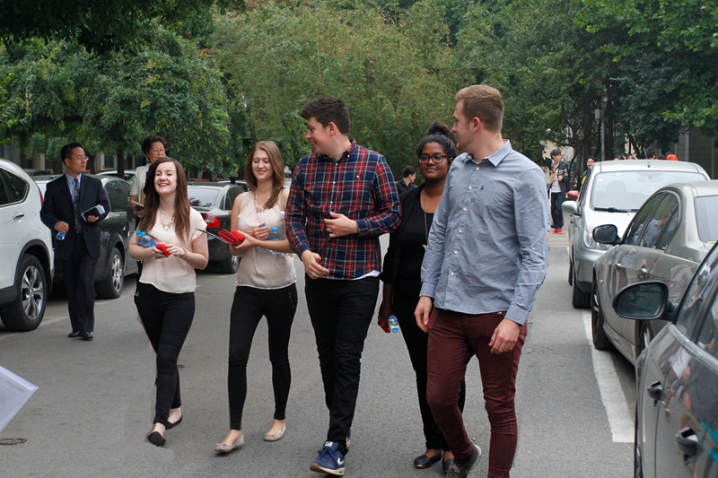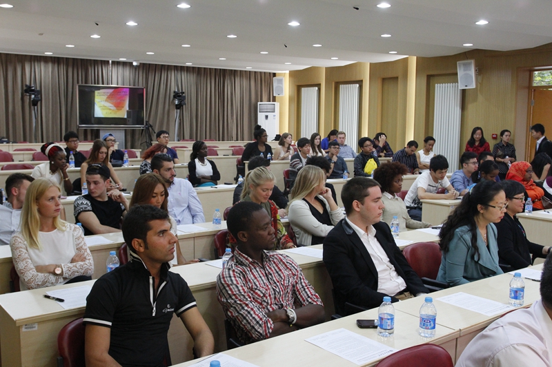 开学典礼前,我校2014级外国留学生新生在国际交流与合作处副处长刘影的带领下参观了我校阜成路校区,对我校的相关教学和生活设施进行了全面了解。随后,国际交流与合作处留学生办公室刘海天老师从留学生签证注意事项、交通安全、经济安全等方面对留学生们进行了法制知识普及,她提醒外国留学生在华学习一定要遵守我国法律法规,了解如何在遇到危险的时候保护好自己并在最快时间寻求帮助。