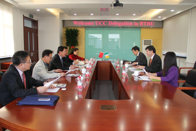 10月27日,爱尔兰考克大学副校长罗南•邓若衡(Rónán Ó'Dubhghaill)一行3人访问我校。李朝鲜副校长在阜成路校区会见了代表团一行。