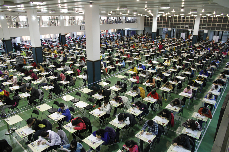 为进一步加强考试管理,促使学生更加重视考试,进而大力促进考风建设,培养优良教风、学风和校风,学校决定对一、二年级期中考试的部分课程试行全校集中式考试。集中考试考场设在良乡校区文体馆一层和三层,总共可以容纳一千多人同时进行考试。