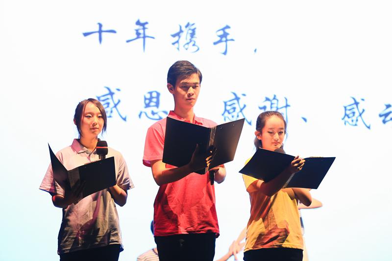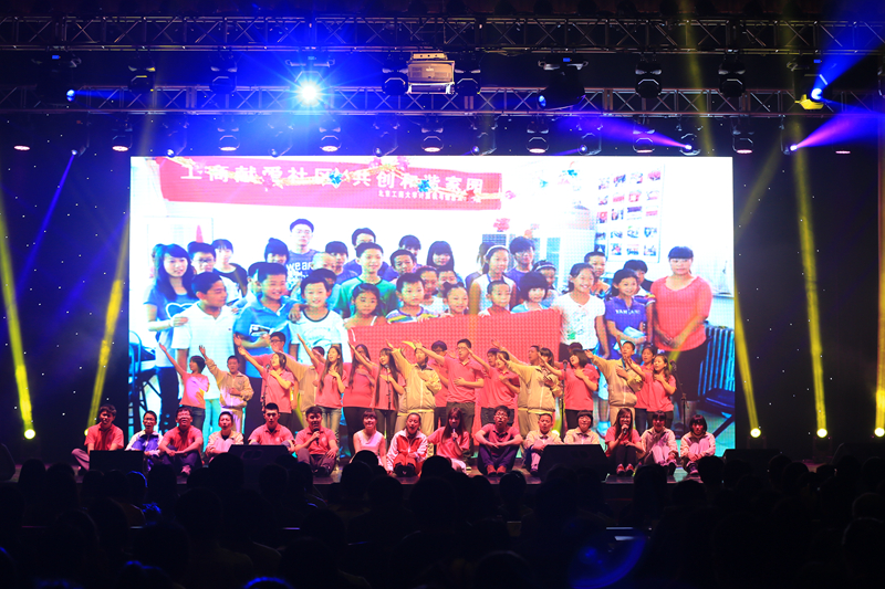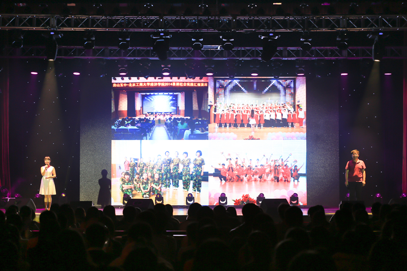 为展示学子在十年社会实践中携手奋进、奉献自我、不断成长的历程,我校师生表演了自编、自创的视频、朗诵、舞台剧等节目。其中,朗诵舞蹈《携紧双手相伴十年》重现了社会实践活动中携手奋进的动人瞬间;自创、感人的情景剧《话青春实践行》生动形象地将水质及食品安全检测、普法宣传、垃圾分类、社区青年汇共建、敬老爱老等学院特色活动呈现在眼前,再现了我校学子无私奉献、服务社会、回报社会,为房山区新农村建设贡献着力量的难忘历程;舞台剧《相伴成长相聚十年》,诉说了我校大学生和中小学生之间共同成长的真实故事,展现了师生在实践活动中的丰硕收获。在“十乡百村千人行”实践活动中经历成长、走向社会的学生、老师们也通过视频畅谈感受,分享成长体会。最后,全场合唱《感恩的心》,用歌声表达了我校对十年来为“十乡百村千人行”暑期社会实践工作付出过辛苦努力的各方面集体和个人的感恩之情,及对社会实践一个又一个十年的共同期待。