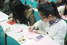 外国语学院精心设计制作“我们走过的100天”纪念视频、海报,回顾记录14级新生入学至今的点滴,分别从“军训进行时”、“新生运动会”、“入学教育周”、“学业引航站”、“期中大考时”五个部分,围绕“文明、和谐、诚信、友善”的核心价值观,展现新生100天的成绩、荣誉和风采。同时,同学们还绘制了手工生日信筒,每个同学书写“给班级的一封信”,寄语班级与同学,表达对身边同学的关爱、争创优秀班集体的决心。英语141班班长张珈熙谈到虽然大家来自五湖四海,但平时互帮互助,虽离家在外却能感受到老师、同学的关心帮助如家般温暖。同学们纷纷表示希望通过参与班级、学院举办的各项活动逐渐形成团结互助友爱的班集体,以行动践行核心价值观。