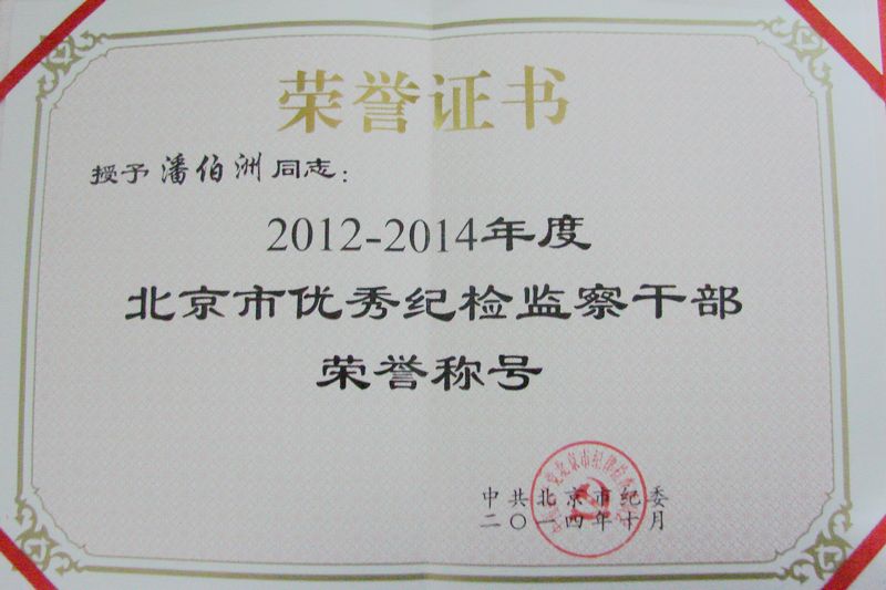 近日,在北京市2012-2014年度先进纪检监察组织和优秀纪检监察干部评选工作中,我校纪委副书记潘伯洲同志被评为北京市优秀纪检监察干部。