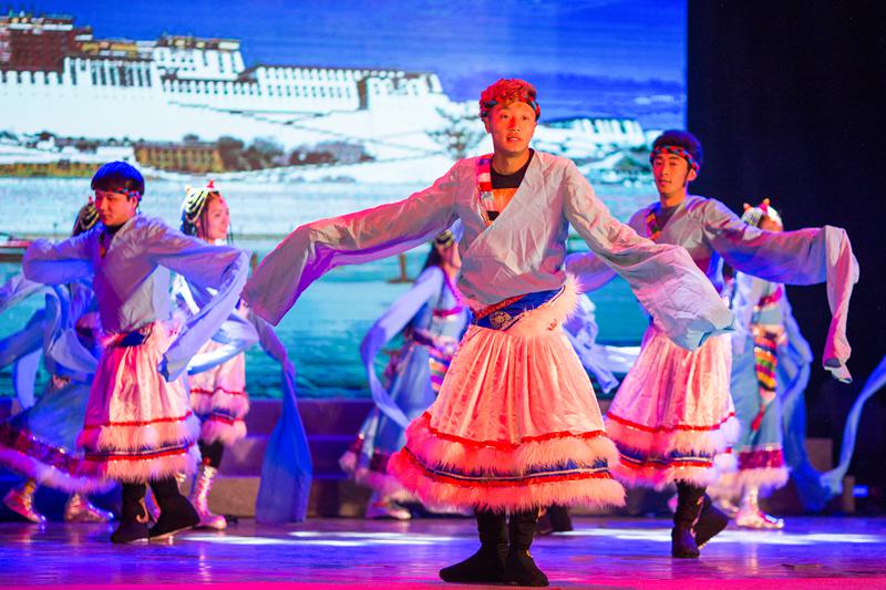 激情未退,身着白裙的舞蹈演员随舒缓的音乐翩翩起舞,校舞蹈团带来的《草原月夜》带领观众走进旷远幽静的大草原。蓝袍小伙的登场打破了现场的静谧氛围,豪迈昂扬的舞姿让观众领略到了草原的大气磅礴。来自藏族、哈萨克族、维吾尔族的同胞身着华丽漂亮的民族服饰,用优美曼妙的舞姿,展现着其独有的民族风情。而《炫舞青春》表演则以动感的街舞,充分展现了同学们的青春活力。