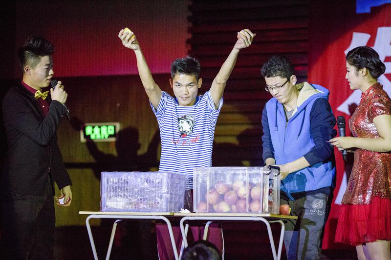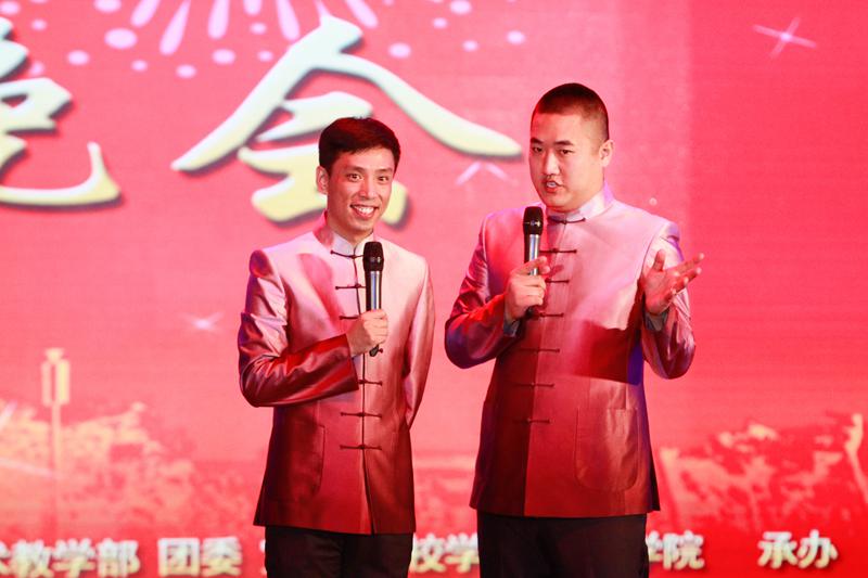 学校特邀青年相声演员贾旭明、张康带来表演《十全十美》,请现场观众出题,通过成语接龙的方式巧妙地将美好的“十全十美”送出,在欢声笑语中带给人们祝福。世界吉尼斯纪录保持者闫百惠受邀为大家带来了精妙的炫动呼啦圈表演。而来自校内的工商达人,用31个徒手掰苹果的超高记录给现场观众留下了深刻印象。