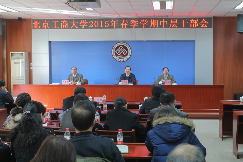 31日,学校在阜成路校区召开春季学期中层干部会议,部署学校2015年各项工作。校领导谭向勇、孙宝国、张德玉、谢志华、李朝鲜、张耘、郑文红、邱晓平出席会议。会议由党委副书记卢思锋主持。全体中层干部参加了会议。