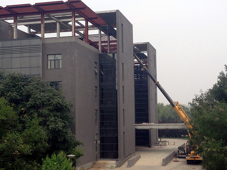楼宇门头及钢架修缮工程主要是对良乡校区锈蚀严重的部分建筑楼宇门头和钢架进行除锈、氟碳喷涂及油饰,通过改造,提高了钢构件的安全性与耐久性,提升了校园建筑外观的观感。