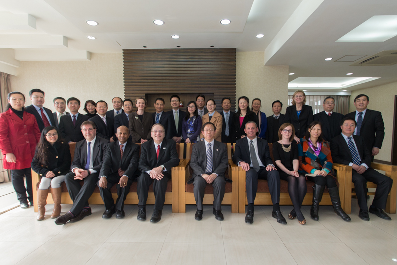 欧洲大学市场区域经理莫青云、美国北伊利诺伊大学商学院副院长贝斯•托维尔(Beth Towell)、美国北伊利诺伊大学运营管理系主任刘昶、爱尔兰考克大学数学系教授黄建、爱尔兰考克大学国际部艾玛•康莱利(Emma Connolly)、爱尔兰考克大学北京办公室水苗、爱尔兰都柏林大学国际部中国事务负责人高蓓、美国弗吉尼亚联邦大学国际教育中心郝晨芳,我校学校办公室主任王小艺、教务处处长魏中龙、研究生部主任杨德勇、国际交流与合作处处长何明珂、宣传部部长张春萍、理学院院长曹显兵、食品学院副院长姚志良、材料与机械工程学院院长黄志刚、计算机与信息工程学院院长蔡强、经济学院院长李宝仁、商学院院长王国顺、法学院院长张秀芬、外国语学院院长罗朝能、艺术与传媒学院院长罗子明、体育与艺术教学部主任顾红、国际交流与合作处副处长刘影一同参加了此次见面会。