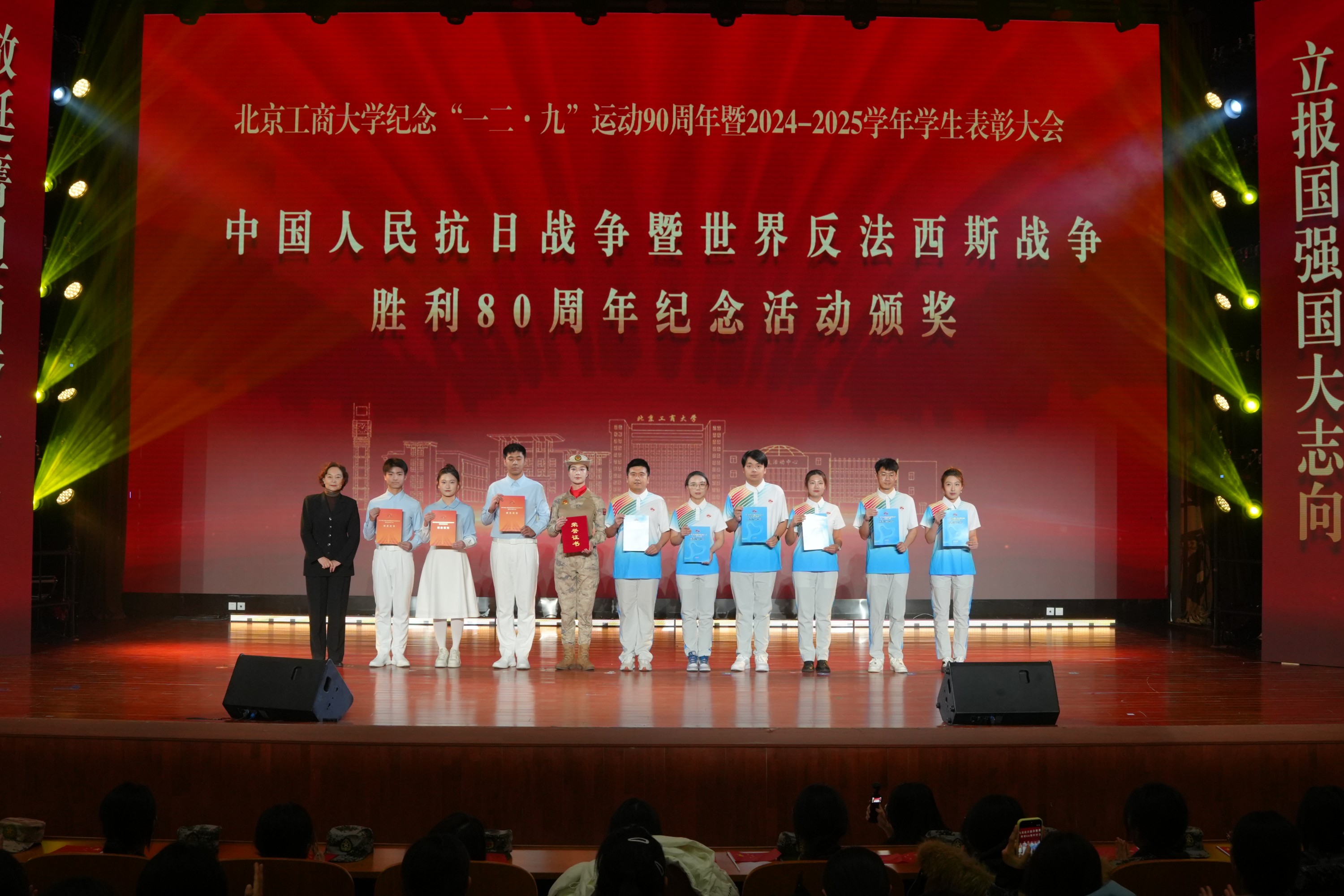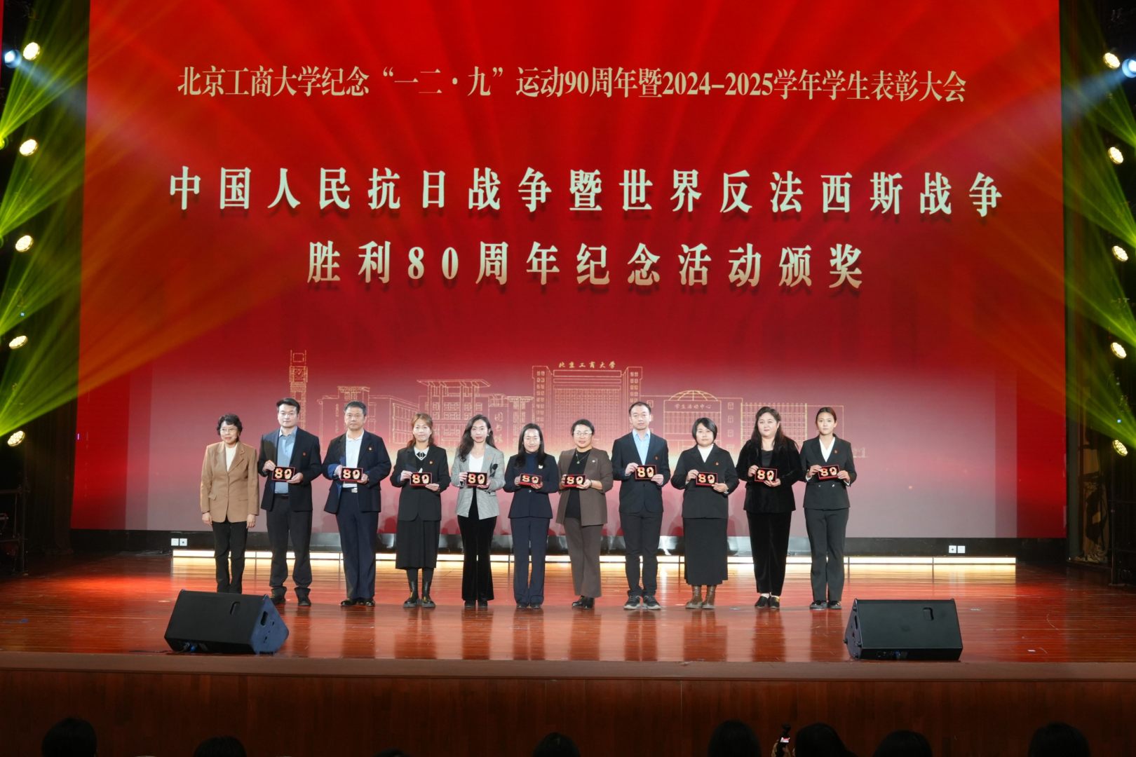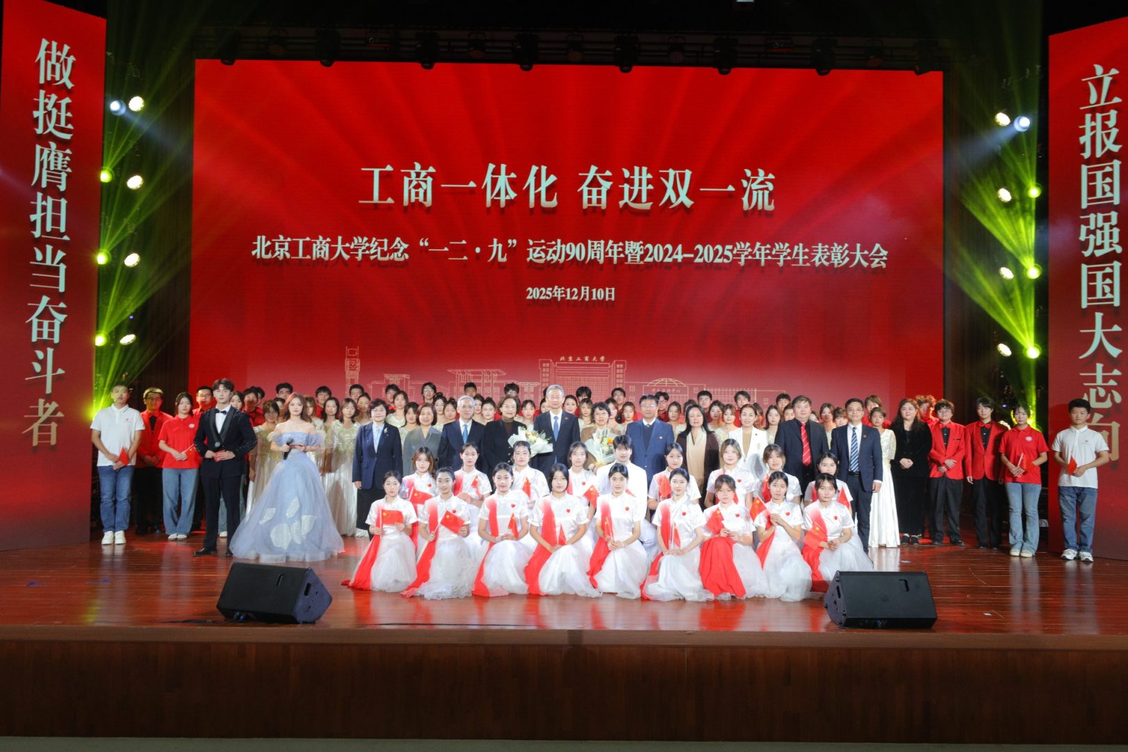 12月10日,北京工商大学纪念“一二·九”运动90周年暨2024-2025学年优秀学生表彰大会在良乡主校区举行。校领导沈千帆、郭建华、李中奇、宋晓欣、杨红、徐丹丹、邓祥征出席大会,相关职能部门负责人、各学院党政领导、校友奖学金代表、校友代表、教师代表、获奖学生代表参加大会。大会荣幸邀请到了当年曾参与和组织“一二·九”运动的黄华、陆平两位革命先辈的后代:黄玫女士与陆莹女士,与全场师生一起见证传承历史伟绩,表彰青春榜样,激昂奋斗力量。