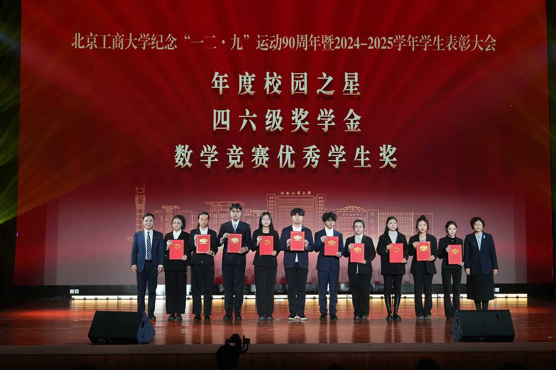 党委书记沈千帆讲话。他代表学校党委向所有获奖个人与集体表示最衷心的祝贺,向辛勤耕耘在育人一线的全体教职工致以最诚挚的敬意。沈千帆表示,七十五年来,学校始终与民族命运同频共振、与国家发展同向同行,作为学校发展的见证者和推动者,过去一年,2300余名北工商学子荣获校级及以上荣誉称号,7600余人次斩获各类奖学金,68个先进班集体脱颖而出,校长奖学金获得者中半数以上已保送顶尖高校深造,多个团队在“挑战杯”“互联网+”等赛事中屡创佳绩,充分展现了同学们过硬的本领和昂扬向上的精神风貌。他为同学们提出三点希望:一是赓续红色血脉,在“爱国奉献”中锚定精神坐标。厚植家国情怀,把爱国情怀转化为奋进力量。二是锻造坚毅品格,在“敢闯敢拼”中筑牢成长根基。将先辈们不畏艰险、勇毅前行的精神基因融入血脉,用坚毅品格托举青春梦想。三是坚持知行合一,在“善作善成”中书写青春答卷。深耕专业沃土,让创新成果绽放在中国式现代化的壮阔征程中。希望同学们坚定不移听党话、跟党走,努力成长为有理想、敢担当、能吃苦、肯奋斗的复合型创新人才,在强国建设、民族复兴伟业中勇担重任、展现风采、贡献力量,书写为中国式现代化挺膺担当的青春篇章。