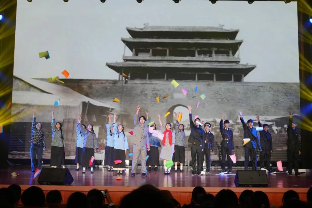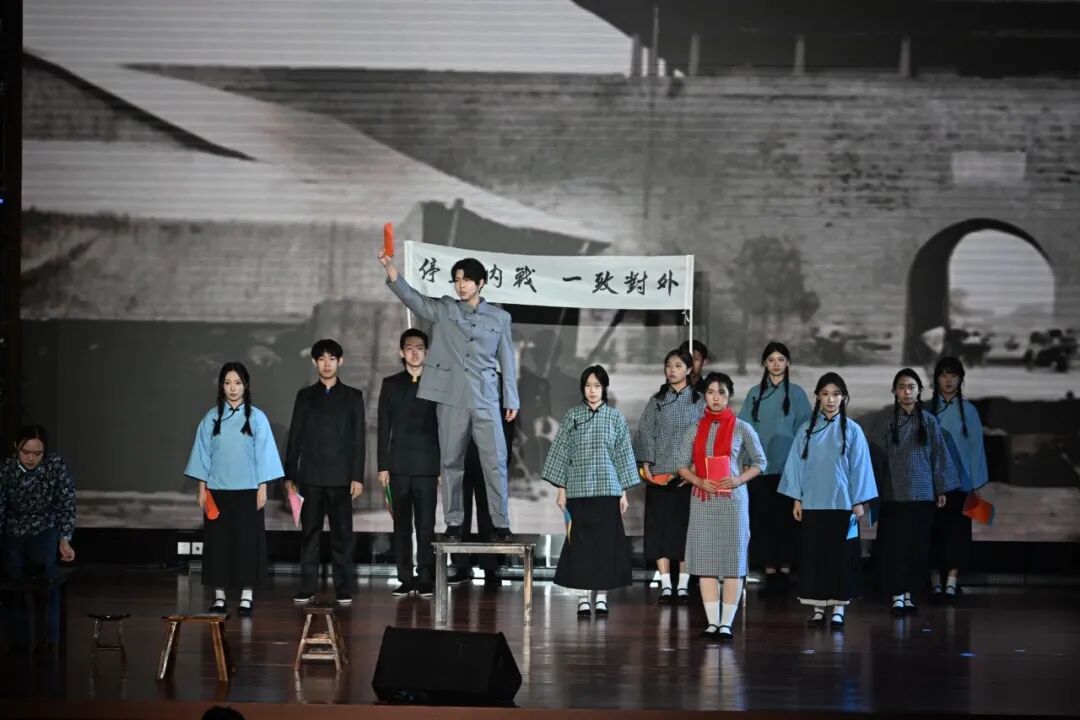 大会在首部校史舞台剧《炬火相传:青春的誓言》中拉开帷幕。该剧以北工商的红色校史为依托,以老校长姚依林为精神符号,艺术化地再现了“一二·九”运动中的真实历史瞬间,以实际行动践行着“请党放心,强国有我”的青春誓言,描绘出北工商青年弘扬伟大抗战精神、与工商共成长、与祖国同奋进的动人图景。这份跨越九十年的青春热血与爱国赤诚,引发全场强烈情感共鸣,掌声经久不息。